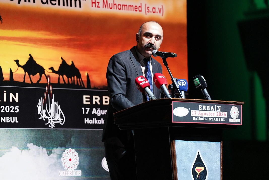 Cem Vakfı Alevi İslam İnanç Hizmetleri Başkanı Mesut Yıldırım, “Bugün burada toplanmamızın sebebi, İslam tarihinin en büyük dönüm noktalarından biri olan Kerbela hadisesini anmak; ancak yalnızca anmakla yetinmek değil, ondan ders çıkarmaktır. Çünkü Kerbela, tarihin tozlu sayfalarında kalmış bir olay değil; her çağda, her toplumda ve her vicdanda yeniden ve yeniden yaşanan bir hakikat sahnesidir.